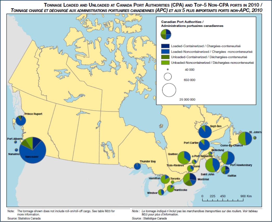 Kanada porty mapě