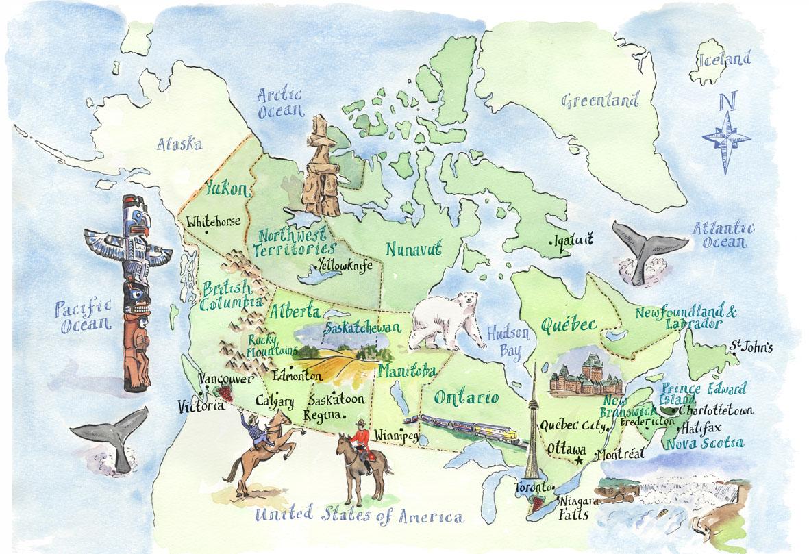 Kanada mapa turistických míst. Kanada turistická mapa (Severní Amerika - Amerika), k tisku. Kanada turistická mapa (Severní Amerika - Amerika) ke stažení.